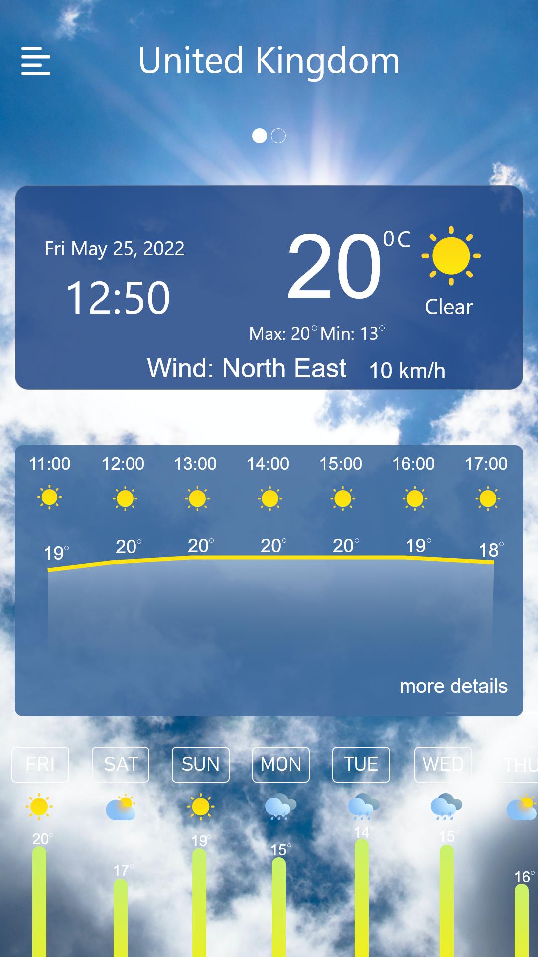 This weather update: weather forecast app gives accurate and real-time weather on a weekly and daily forecast basis. You can manage your trips according to real-time weather updates and never face flight delays due to weather conditions. The live sky weather app functionality provides weather forecast details and weather info. You can check the live dark sky weather of your favourite city in the world.