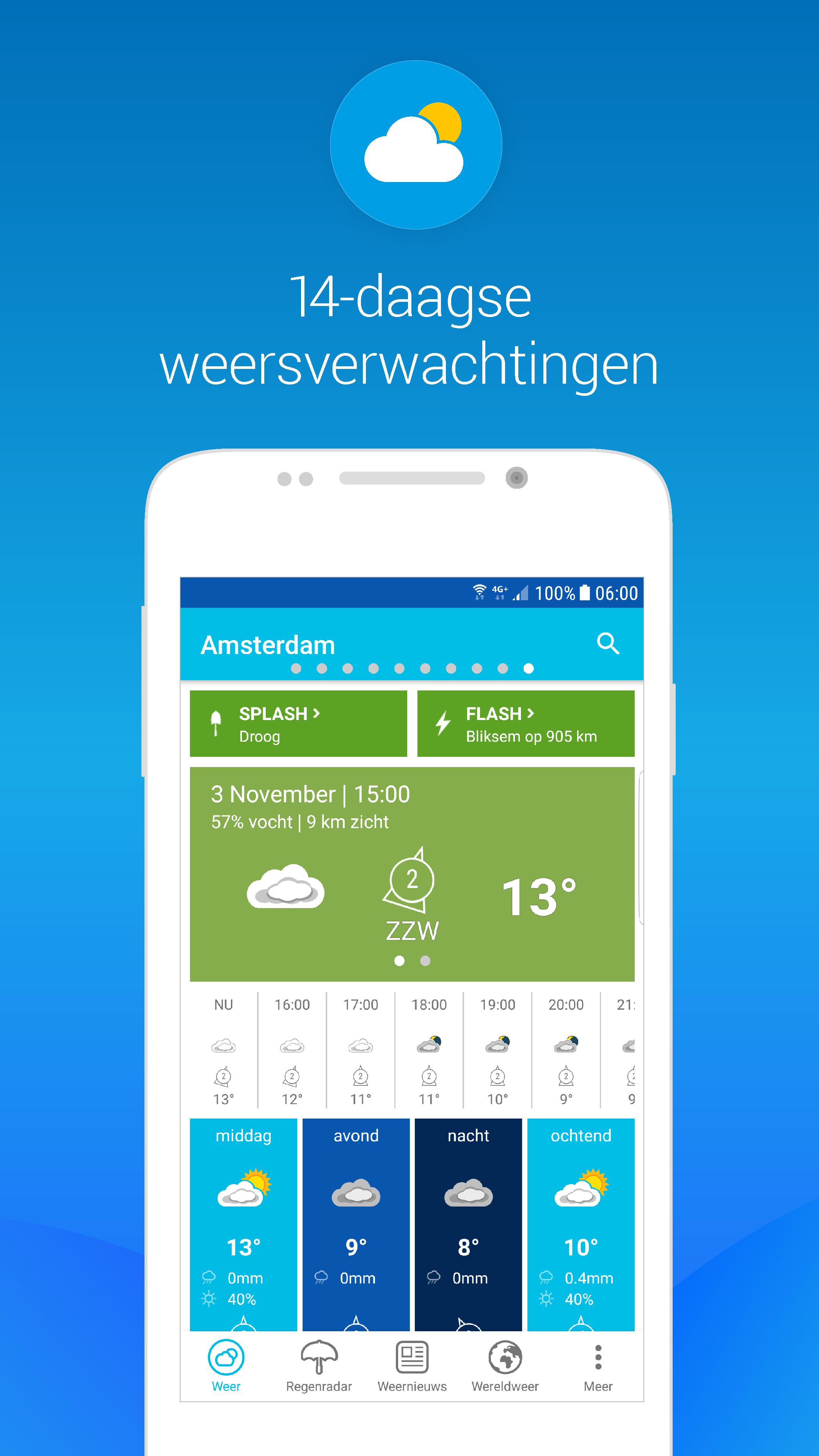We use push messages to warn you of showers, approaching thunderstorms and a weather alarm. With weather news by well-known meteorologists, the background to the weather is explained in detail.
