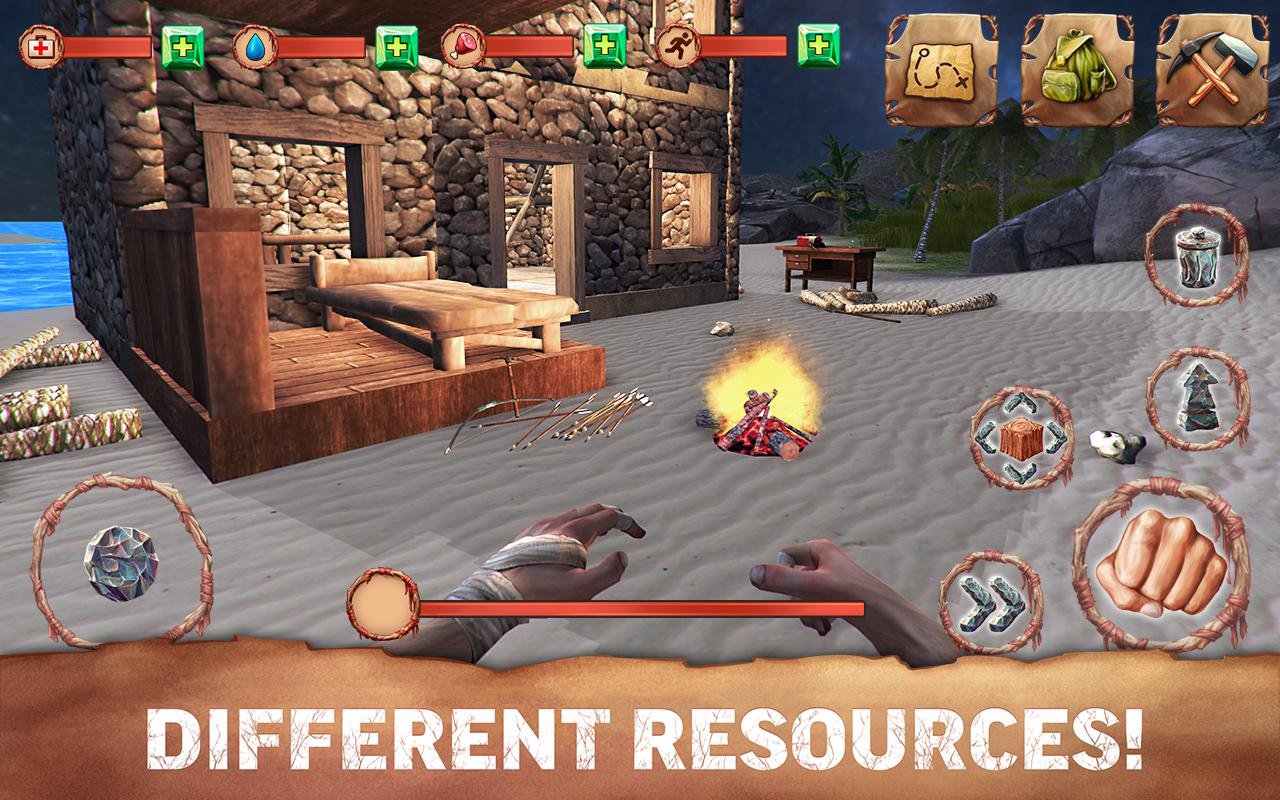 Collect items, get different resources, cut down palms, build own house in new survival game.