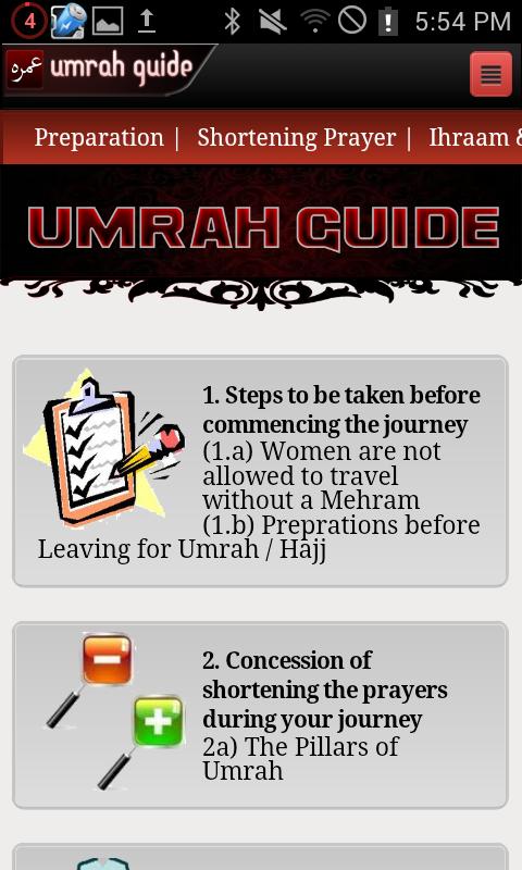 This application enlists the step by step guide to perform Umrah. Every step and ruling has a reference enlisted from the Qur'an and Sunnah.