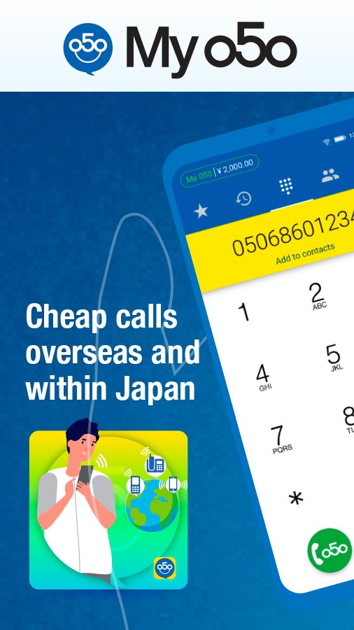 My 050 is a service that allows you to place cheap phone calls to regular phone numbers in Japan and any other country in the world.