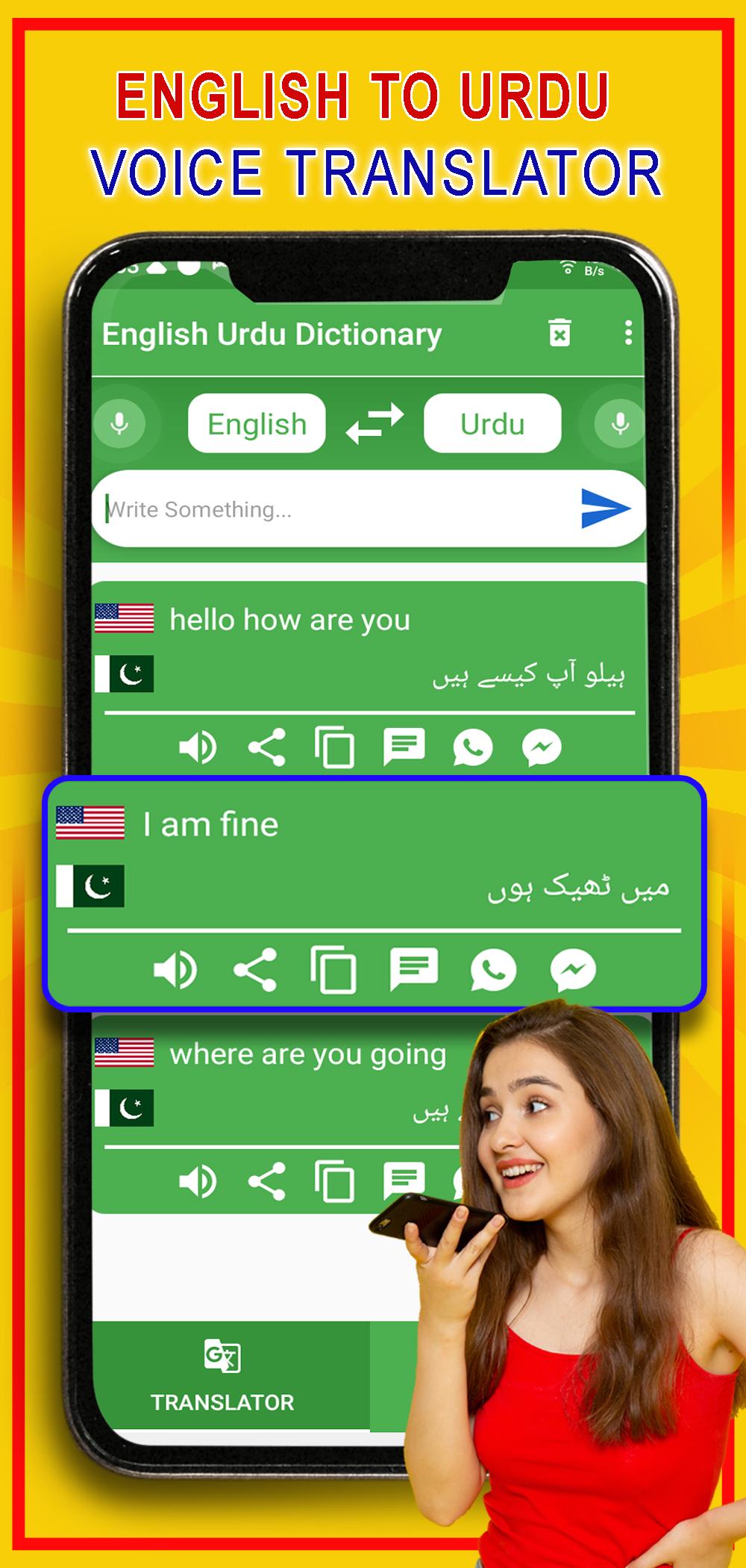 Download this Simple and Easy to use English to Urdu Translator app and start chatting in English. You can use this app as Urdu to English Dictionary as well. Type or speak any word or a sentence and this app will do wonders and translate it for you.