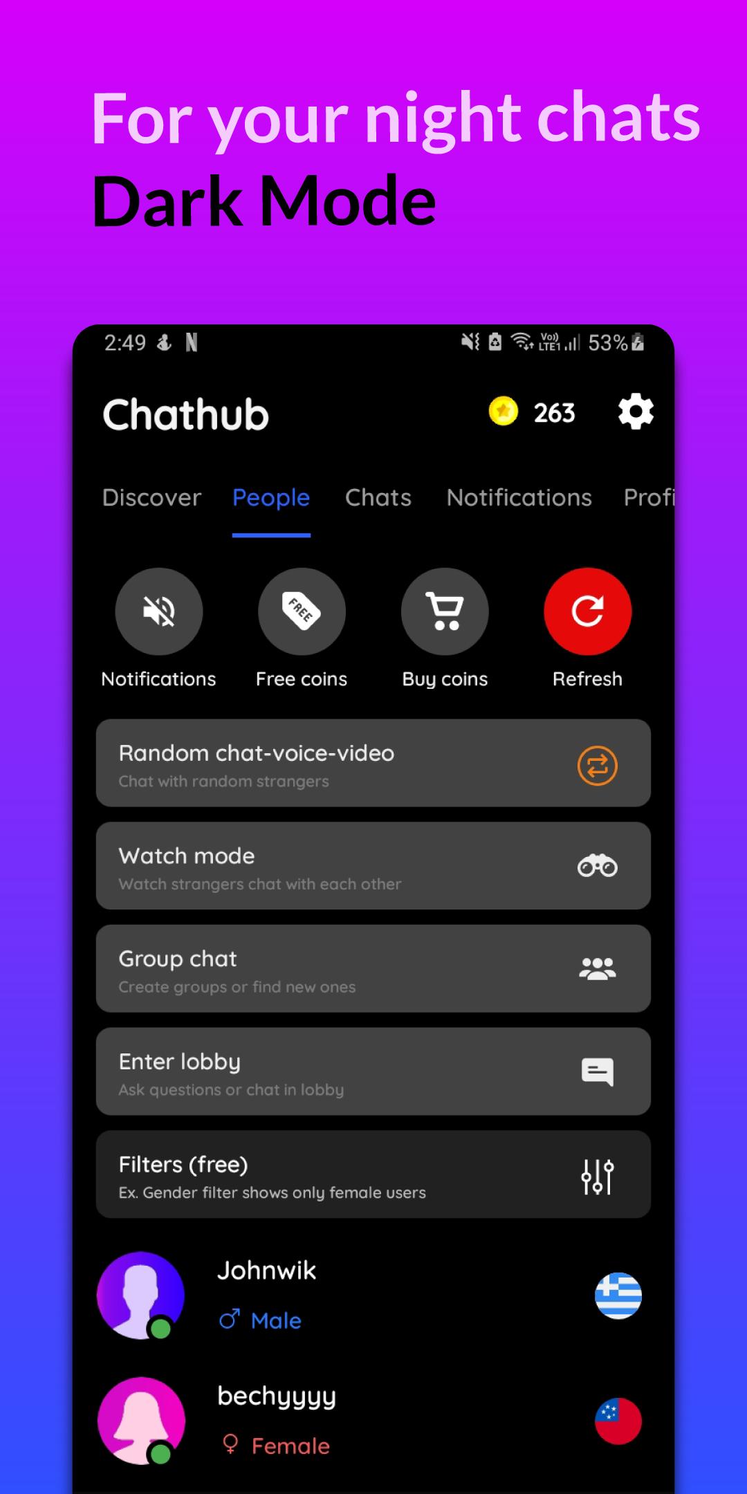 So what are you waiting for? Download ChatHub Lite today and start connecting with people from all around the world! Whether you're looking for a casual chat or something more serious, our app is the perfect place to make new friends and explore new cultures. With our advanced matching algorithm and variety of fun features, you're sure to find someone who shares your interests and passions. Best of all, it's completely free and anonymous, so you can chat with strangers in total privacy. Don't wait - download ChatHub Lite today and start chatting with strangers from all around the world!