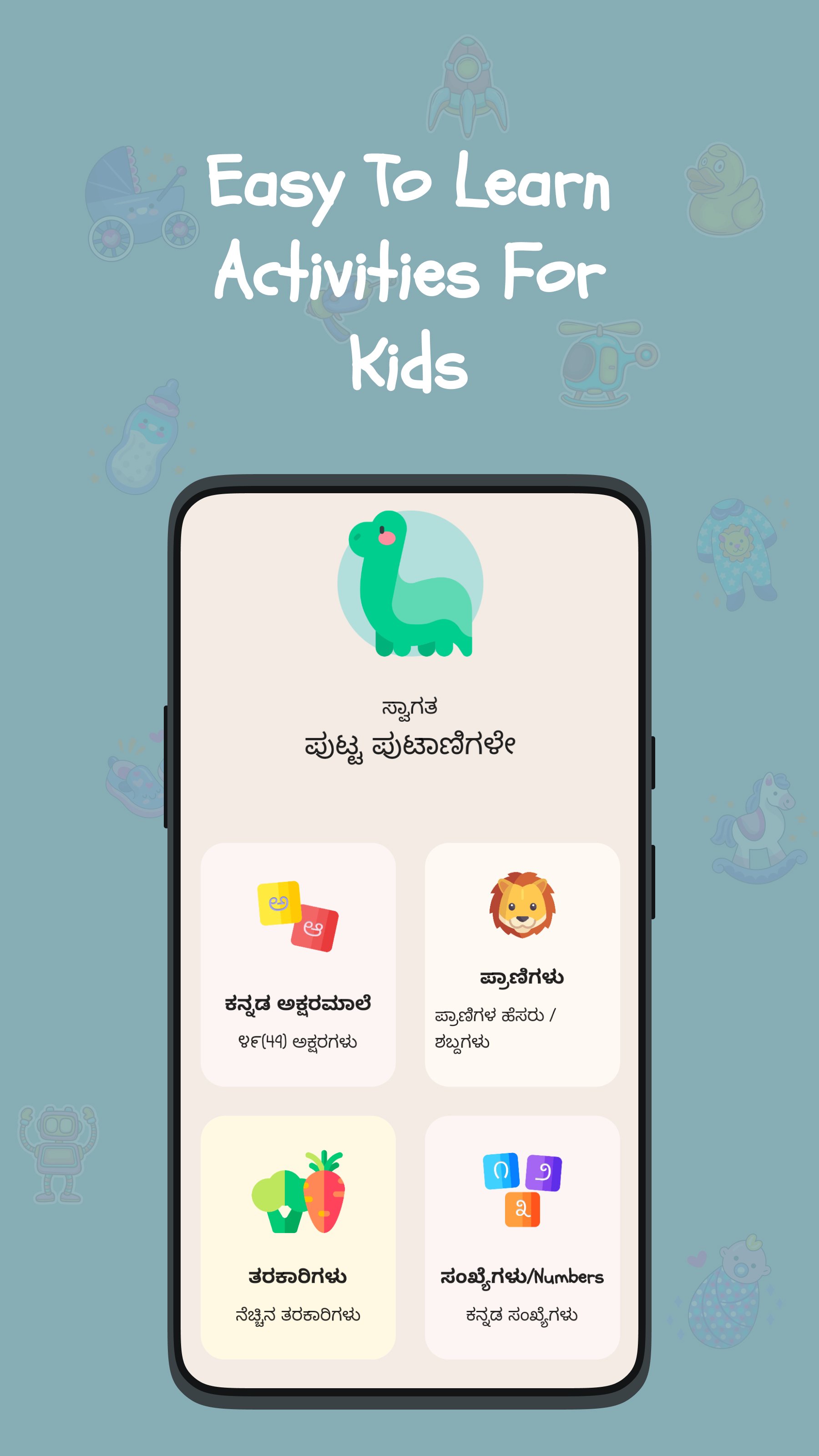 At present the app contains fun interactive elements of the Kannada Aksharamala and we will be adding more features like vegetables, shapes, months and many more