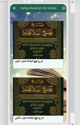 Explanation of Nahj al-Balaghah by Ibn Abi al-Hadid, which consists of twenty-five parts. I have endeavored to put it in pdf format with unique advantages, as it enables scholars to search within the explanation of Nahj al-Balaghah by Ibn Abi al-Hadid for any word or sentence, and copy whatever they want from the explanation of Nahj al-Balaghah by Ibn Abi al-Hadid to be used in Research or study it, so that you can also copy all the book and paste it on the word file and control it.