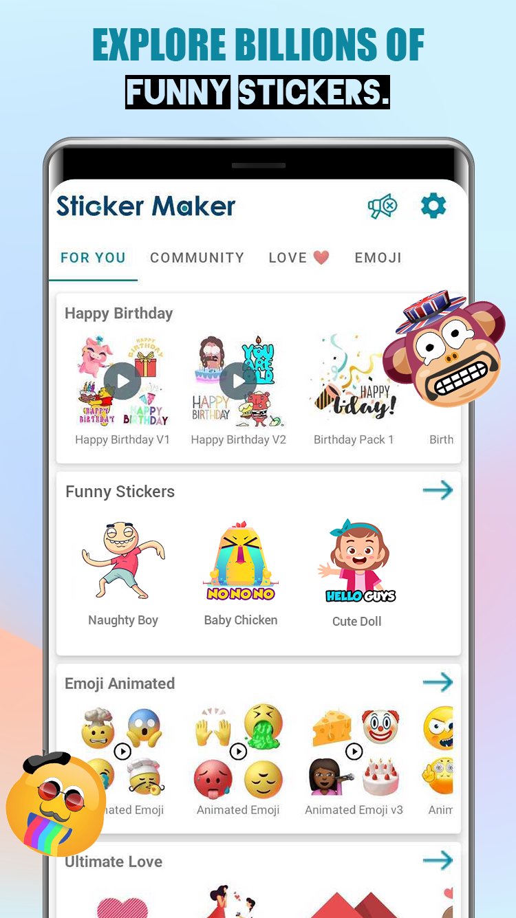 🎩 - Create unique and hilarious sticker designs with built-in accessories like beards, spectacles, hats, and more, along with an emoji creation feature.