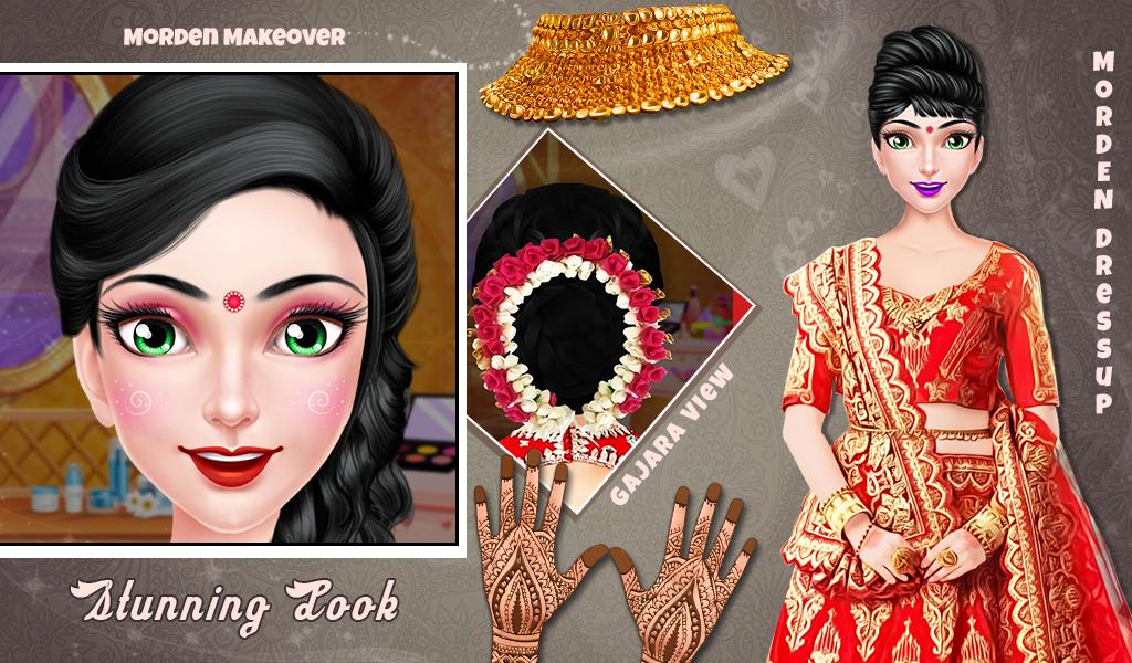 Make up and dress yourself up to be a cute Indian girl and beautiful bride in the Wedding Salon fashion games for girls.