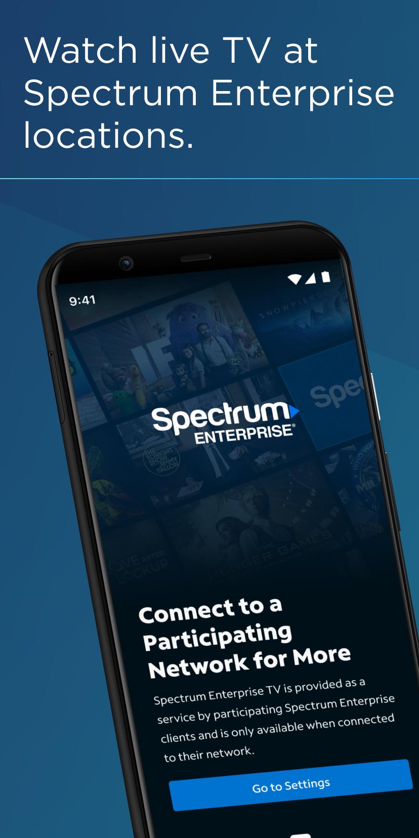 Download the Spectrum Enterprise TV app and enjoy Spectrum TV at participating Spectrum Enterprise locations. The Spectrum Enterprise TV app lets you stream live TV and thousands of On Demand shows and movies.