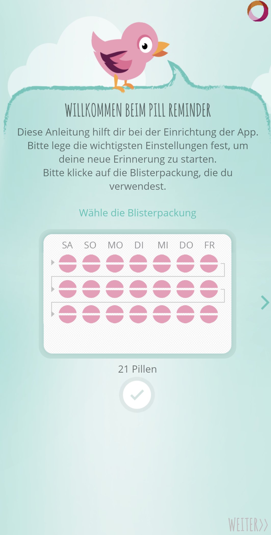 • remind you to take the pill daily, with a freely selectable reminder time.