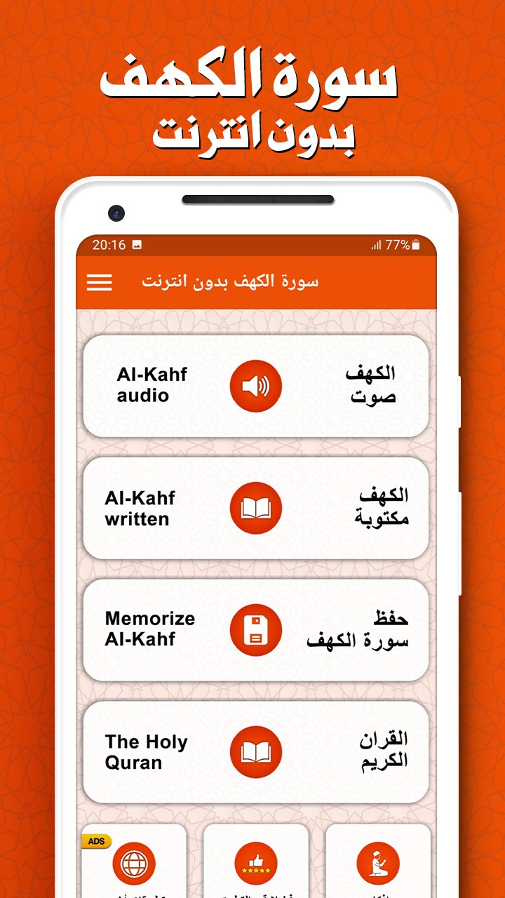 Through our application, you can listen to the image of the cave written in its entirety, as well as memorize Surah Kahf in audio without the net.