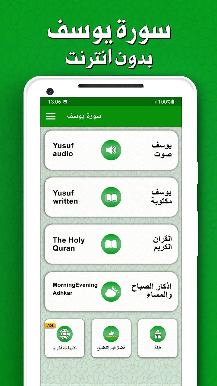 Surat yusuf offline is an application that enables you to download surah yusuf offline with the voice of the most famous Arab readers, and you can also find surat yousaf with the most beautiful voices in the islamic world, this program is using a very fast mp3 format, so you can download the surah quickly and without any problems.