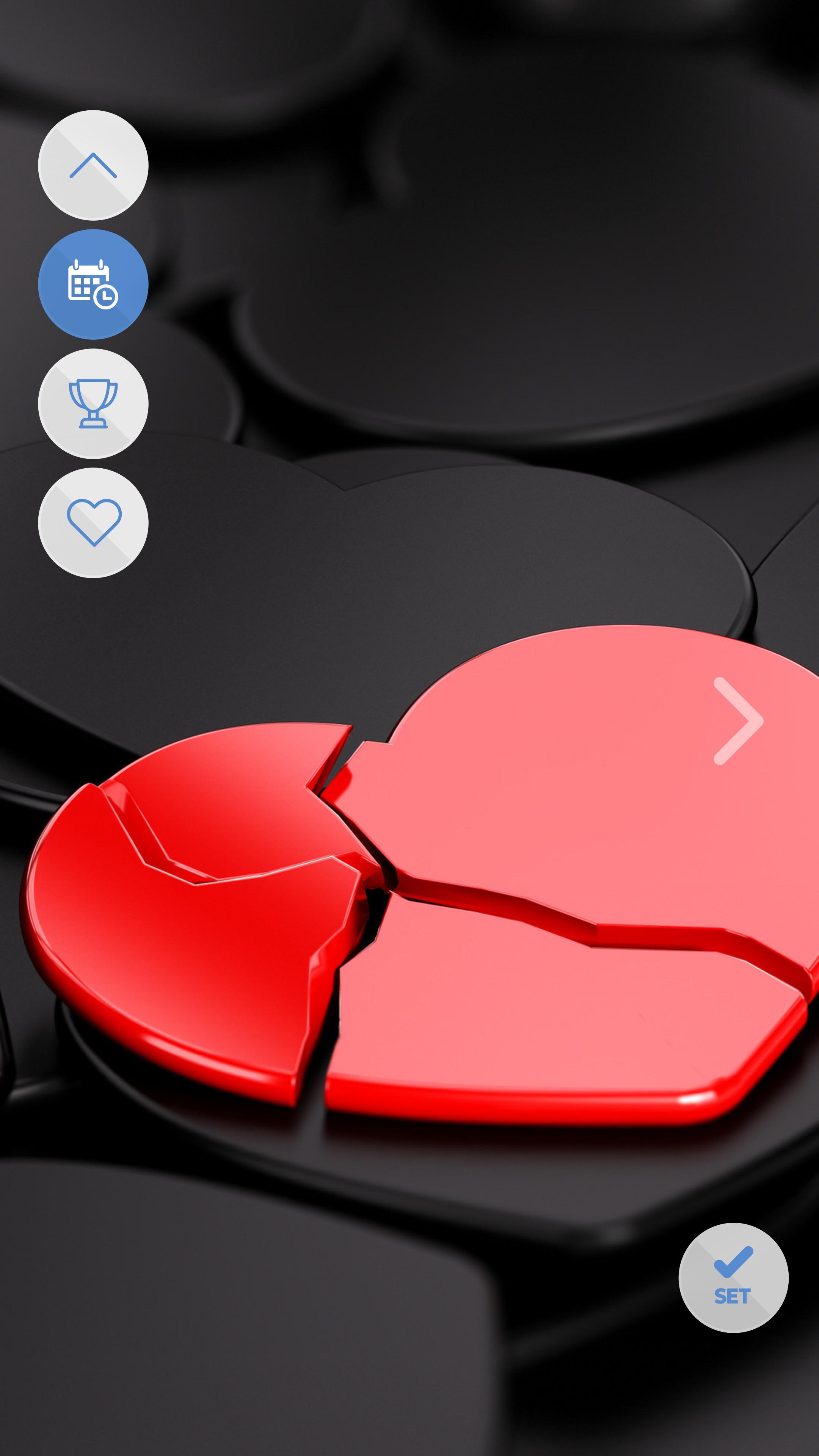 Selecting and changing the wallpaper on your device has never been so easy. Choose a wallpaper that reflects your mood, click "Set on screen" and let Broken heart wallpapers app transform your phone. Our automatic fitting technology guarantees that the wallpaper will perfectly fit your screen size, regardless of the phone model.