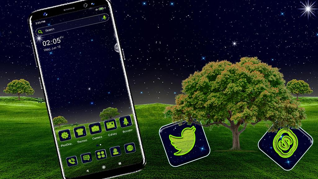 A fresh, clean, and perfect user interface template that provides users with a more intuitive and immersive control experience. If you love new look for your phone everyday. Now you can get Nature Night View theme to decorate your phone all over with animation for free. Fresh giant Nature Night View theme has HD wallpaper with Green icon packs. Nature Night View Theme have icon changer for 100+ popular apps.