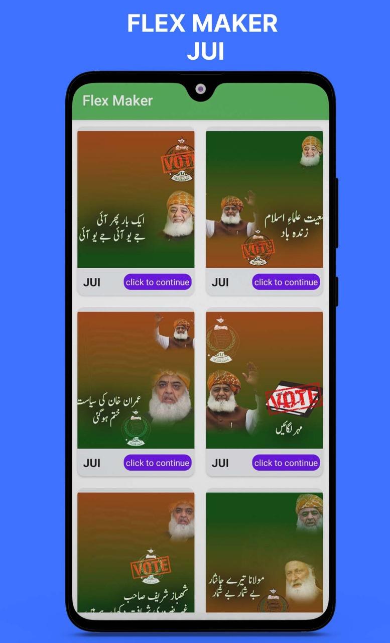 JUI Urdu flex Application can make you popular and well known among your Pmln Supporters(Allies) and do assist your vision with advancing to promote among others.