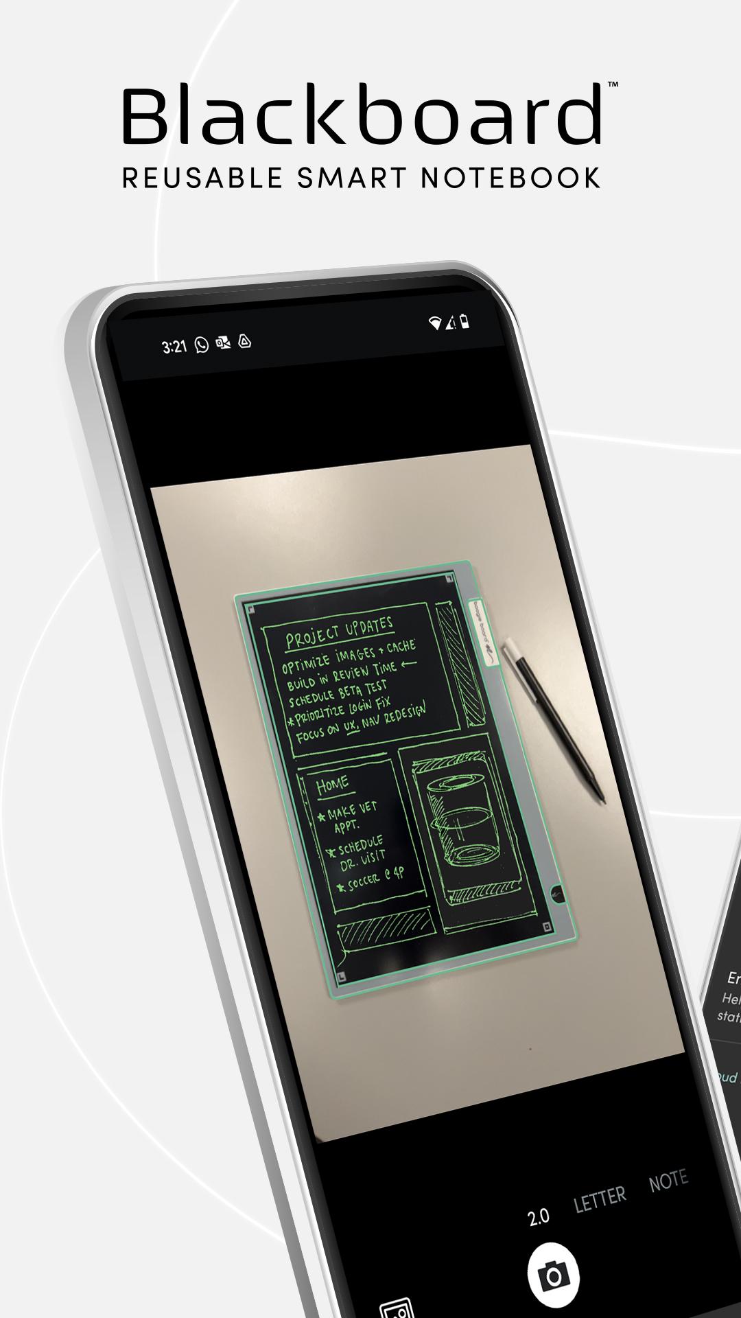 • Pick from two versions (both app compatible): Smart Pen and Smart Scan (available in Blackboard™ 2.0 and original model). Smart Pen seamlessly saves notes to one’s smartphone via Bluetooth®, while Smart Scan captures and saves notes via smartphone camera.