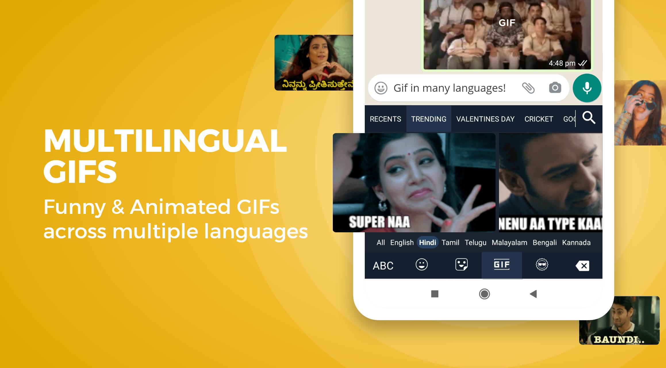 AI keyboard for faster multilingual typing, themes, GIFs & Stickers in Indic languages, cute emojis