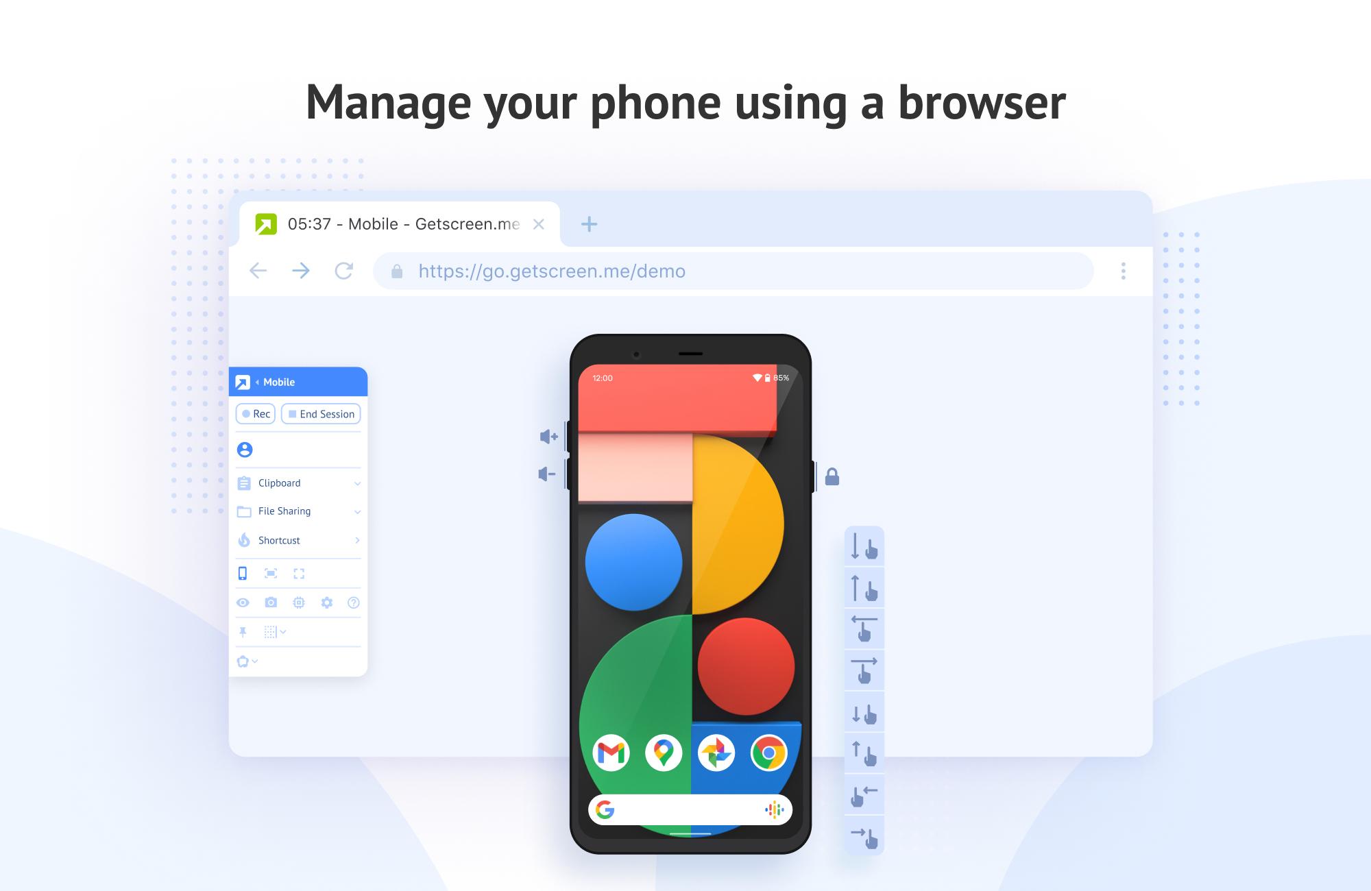 Install the application and control your phones, tablets and other devices directly from your browser!