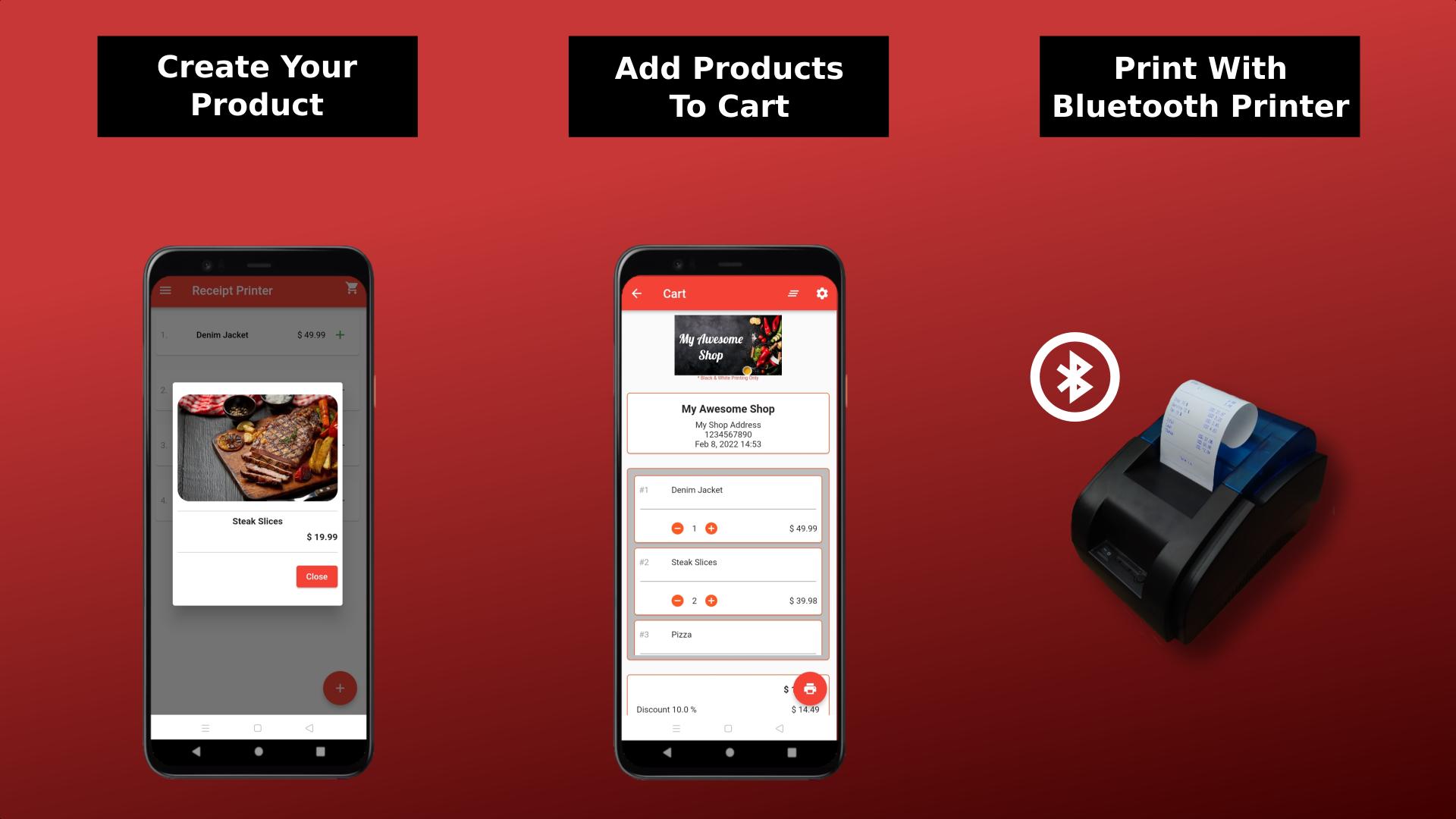 Receipt Printer Bluetooth is a receipt printer app to print your business receipt to your Bluetooth Printer Via Bluetooth Connection.