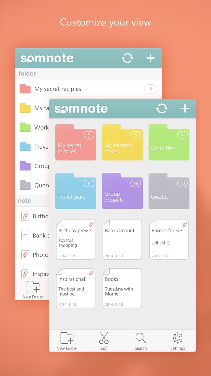 SomNote is the best journal app that over 3+ million users already picked! Along with a beautifully designed user interfaces, it offers high-speed access. Moreover, you can change fonts for free and it allows you to attach pictures or documents on the journals. Journals and attached files can be automatically synced so you can view it on all your devices, including PCs and iPads. Synced journals and files can be restored safely even after you've reformatted your devices. The future of journal is in SomNote. Check it out now!