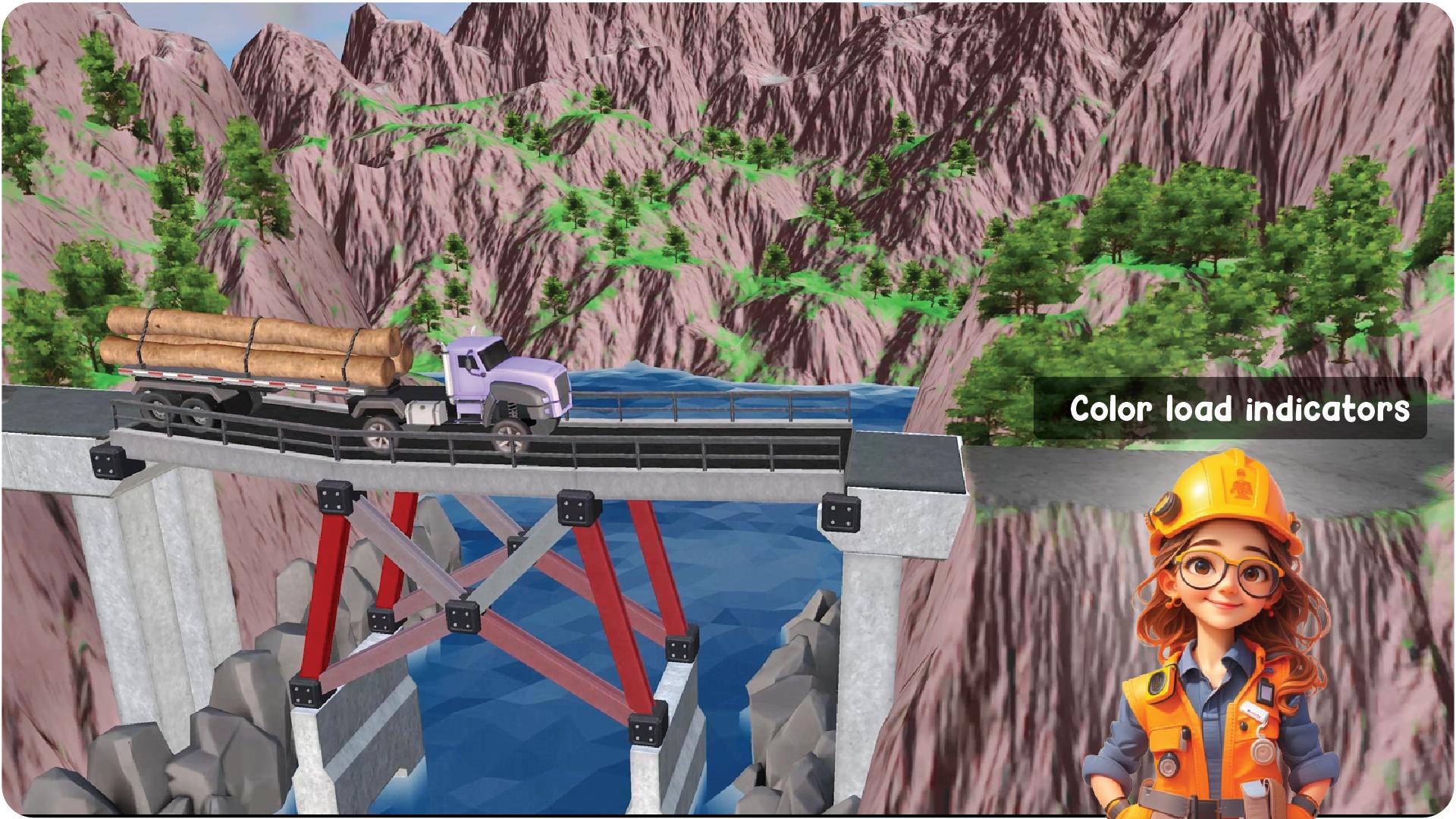 Experience the realistic physics engine as you watch vehicles with substantial loads cross the bridges you create. Witness the tension and flexing of the structure, and use visual feedback to identify weak points in your designs. Employ logical reasoning and problem-solving skills to rectify any flaws and improve the performance of your bridges.