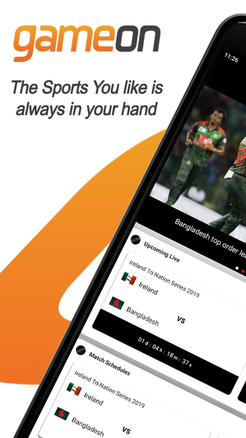 Game On is a live streaming based sports app where you can watch live cricket, football and other sports. You will also find latest sports highlights, news, score updates, review, post match conference of cricket football, tennis and many other sports.