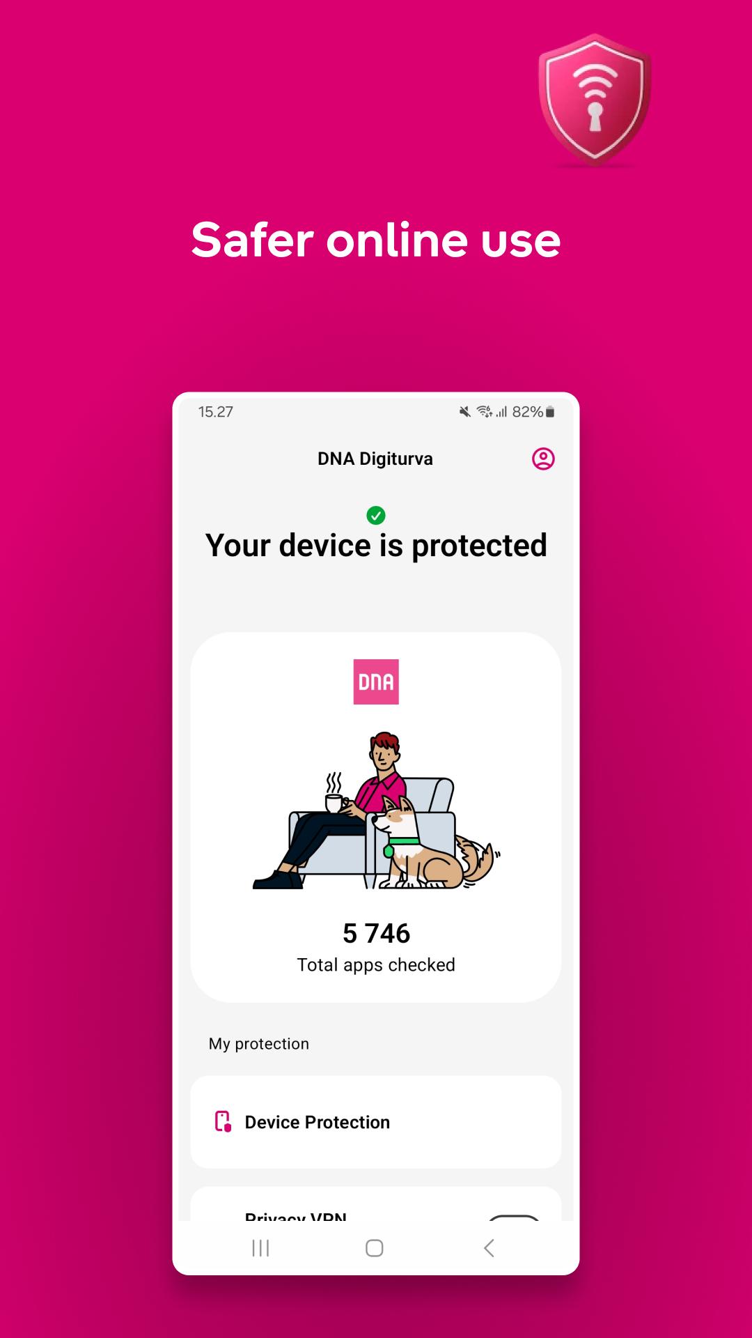 DNA Digiturva is protecting your mobile device from viruses, spyware and information theft. The solution also secures your web browsing and allows parents to use Parental control features.