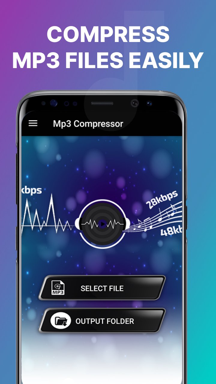 MP3 Compressor Size Reducer Allows You to Compress Audios .You can Compress the Audio,see the Preview & Share it.It Compresses Audio in Memory Size in Output with Simple steps & Save File to Your Device.