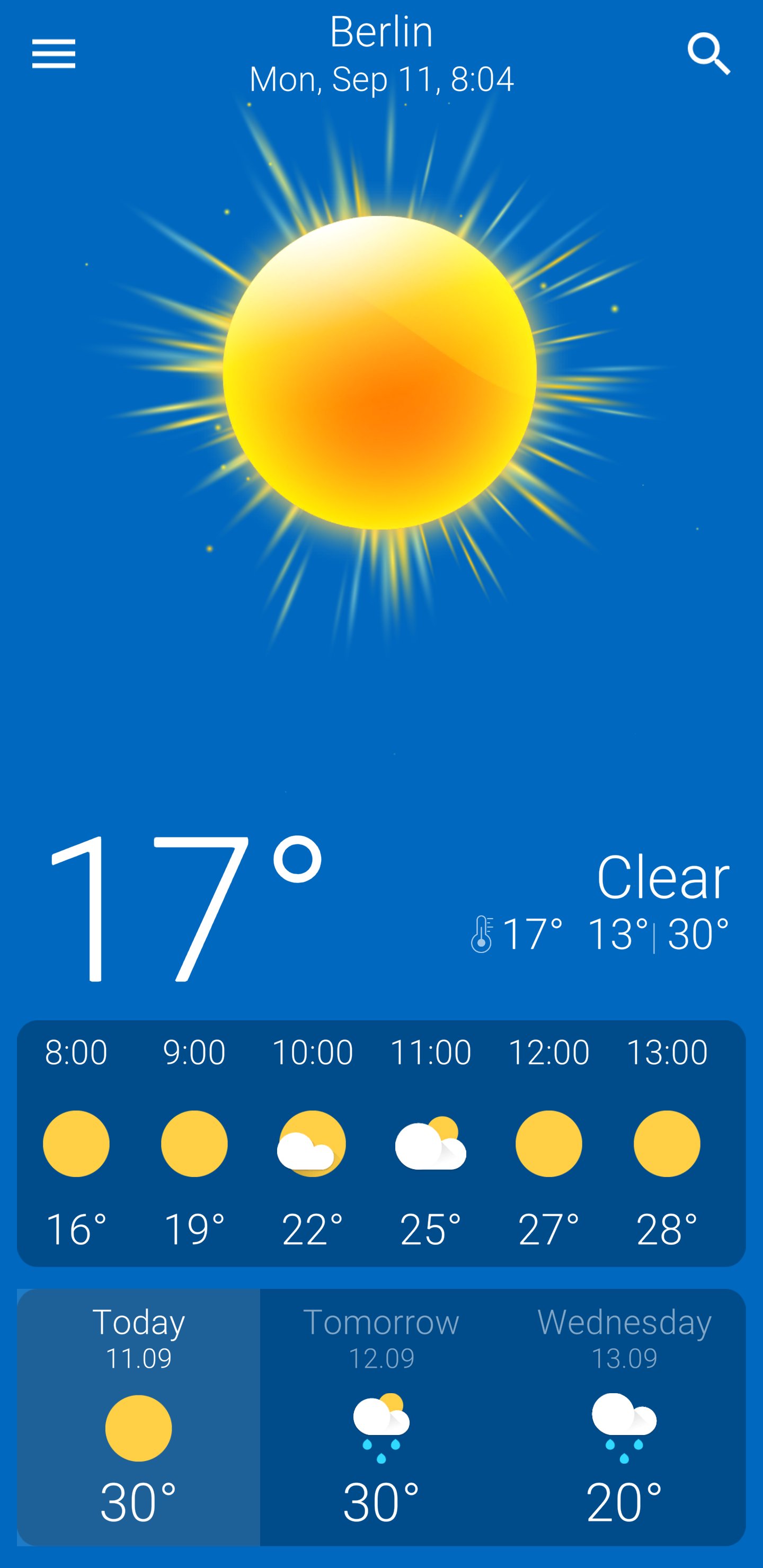 - Animated current weather conditions.