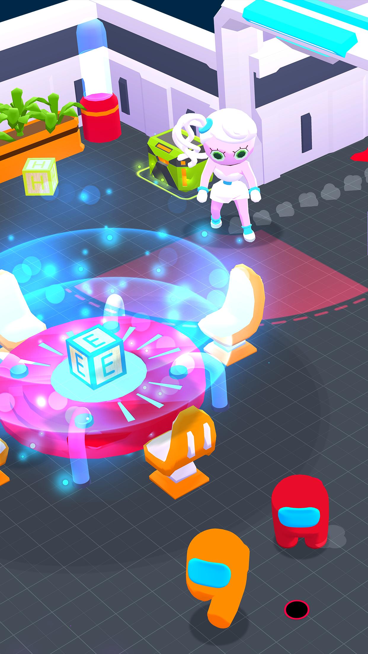 - Используйте джойстик, чтобы переместить самозванца, собрать коробку к столу.