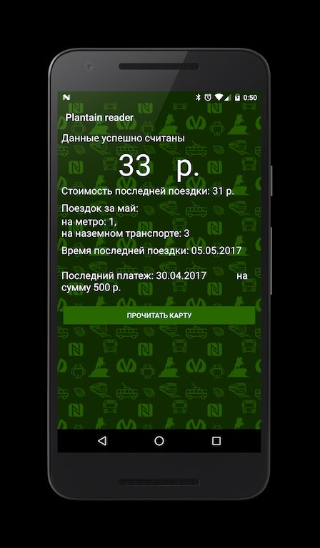 Внимание! Приложение не содержит кода для перезаписи информации в карте, не имеет возможности изменять баланс карты, только просмотра информации о текущем балансе и количестве поездок исключительно в ознакомительных целях.