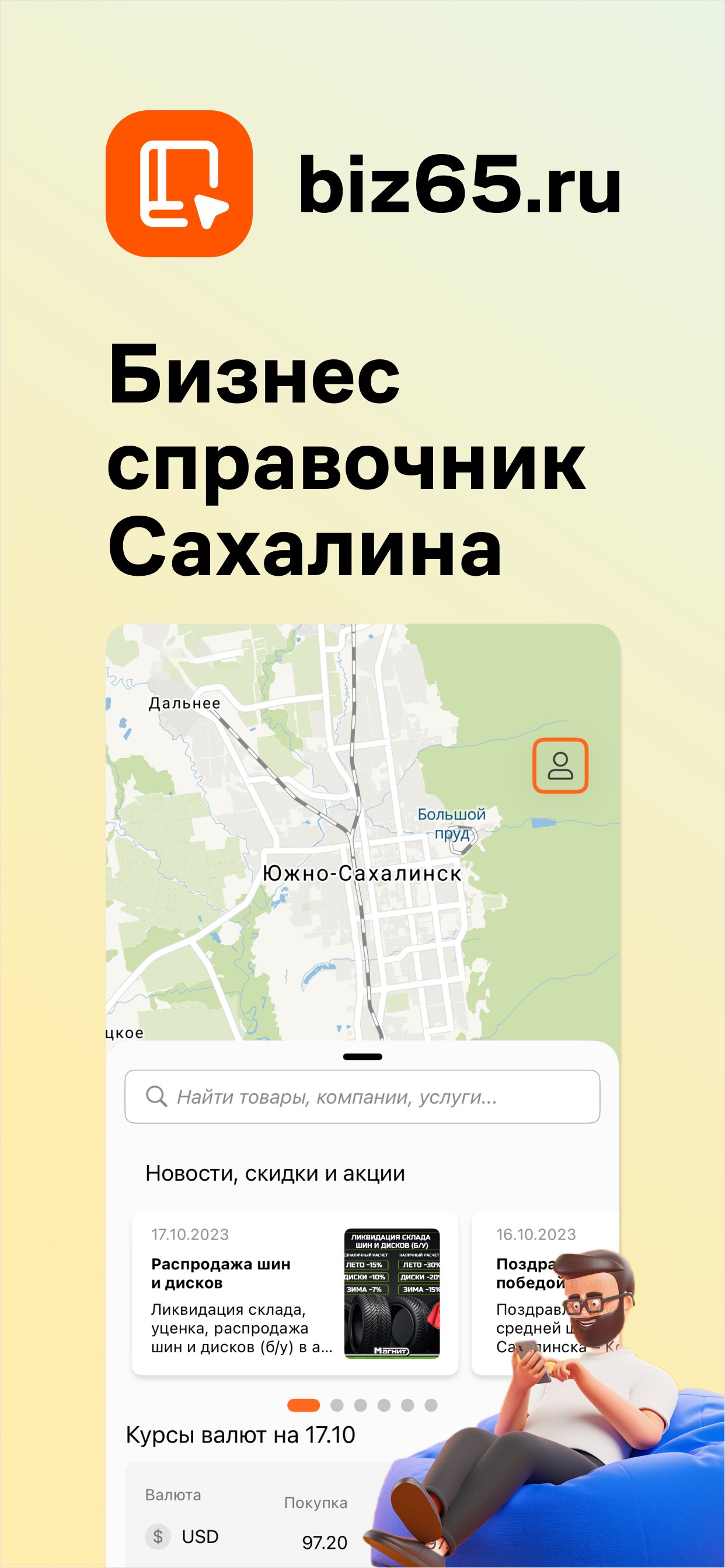 Теперь актуальные курсы валют всегда под рукой и на главном экране. Легко находите компании в новом переработанном поиске по каталогу, а так же теперь и на карте Сахалина. Полная контактная информация, отзывы, новости, скидки и акции, филиалы компаний.