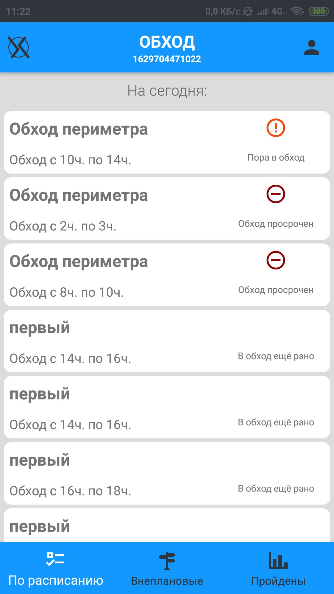 В нашей системе контроль за выполнением обходов персоналом осуществляется с помощью фиксации посещения специальных меток, установленных в контрольных точках на маршруте. Специалисты, выполняющие обход, обязаны отмечаться в контрольных точках маршрута, а результат посещения заносится в систему. В качестве меток используются специальные радиочастотные метки (RFID), которые размещаются в необходимых местах на маршруте. Считывание метки выполняется с помощью смартфона или планшета с установленной на нем системой ОБХОД. При завершении обхода в системе сохраняется полная информации о времени посещения каждой метки. Эта информация передается на центральный сервер, где руководитель может проконтролировать совершенные обходы.