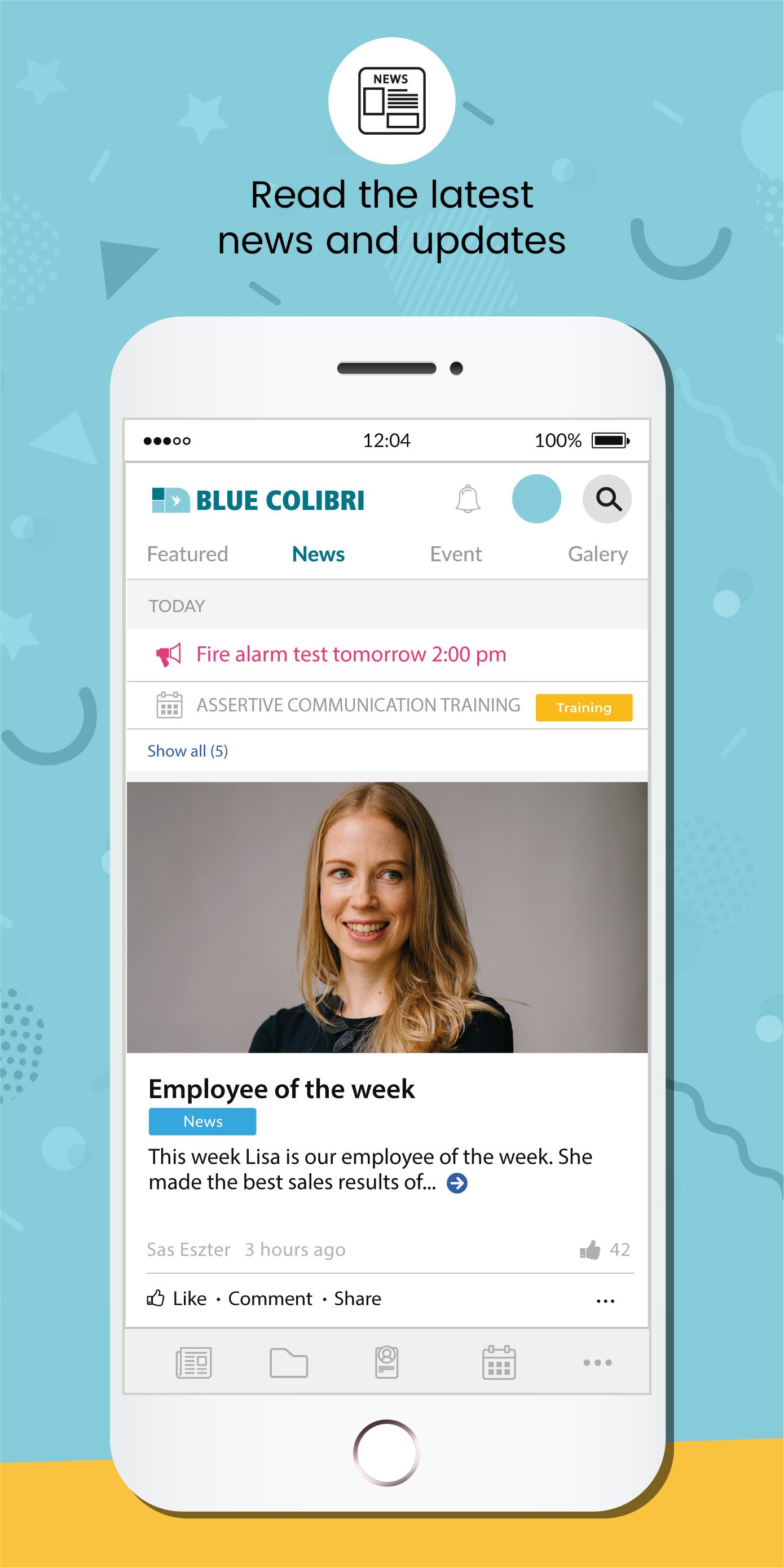Вы можете читать последние новости компании в любом месте, создавать группы одним нажатием кнопки, общаться с коллегами в чате, оставлять отзывы, заполнять анкеты или викторины, организовывать мероприятия, проверять и загружать изображения и документы или даже развиваться с помощью нескольких электронных - учебные и ознакомительные материалы.
