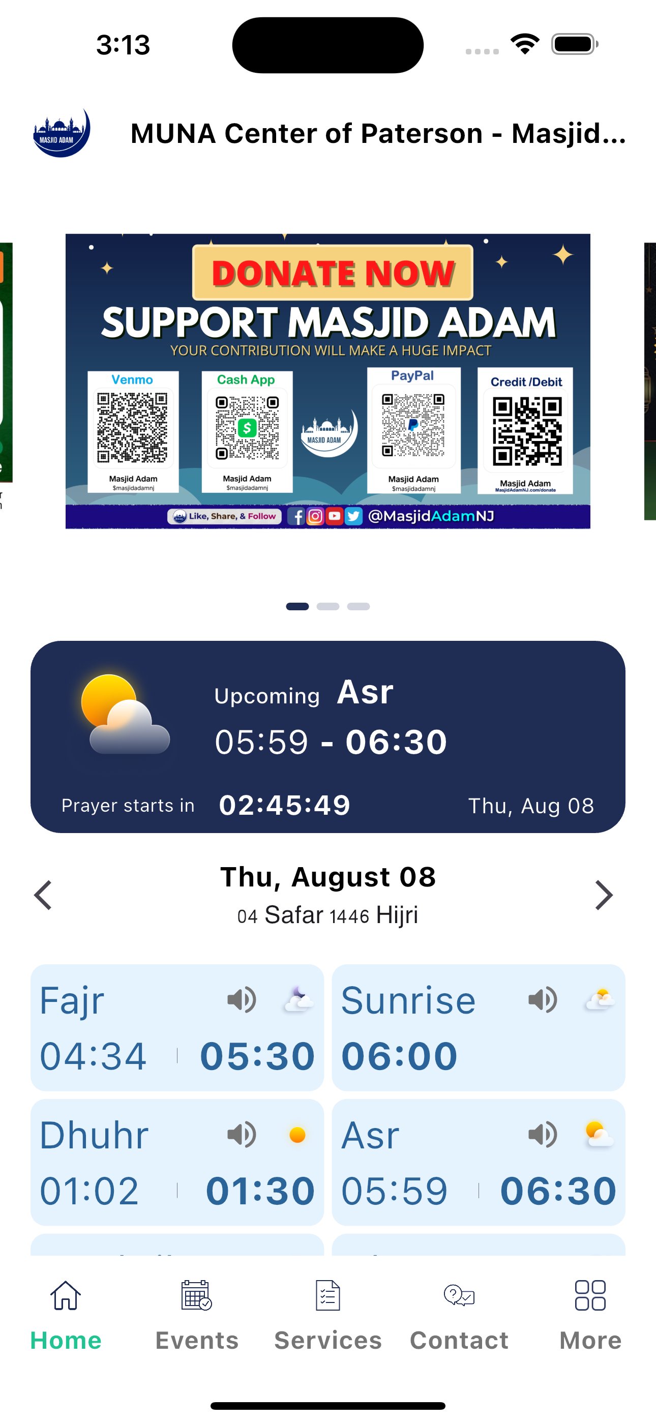 Масджид Адам («Новый свет, новый дом») — проект Центра MUNA в Патерсоне. Это первая мечеть в бангладешской мусульманской общине в Патерсоне (Нью-Джерси), в которой есть молитвенное пространство для наших сестер, и мечеть, посвященная помощи нашей молодежи в формировании сильного чувства мусульманской идентичности. Это приложение Masjid является новой платформой для нас, позволяющей продолжать нашу работу по служению мусульманам и человечеству в целом.