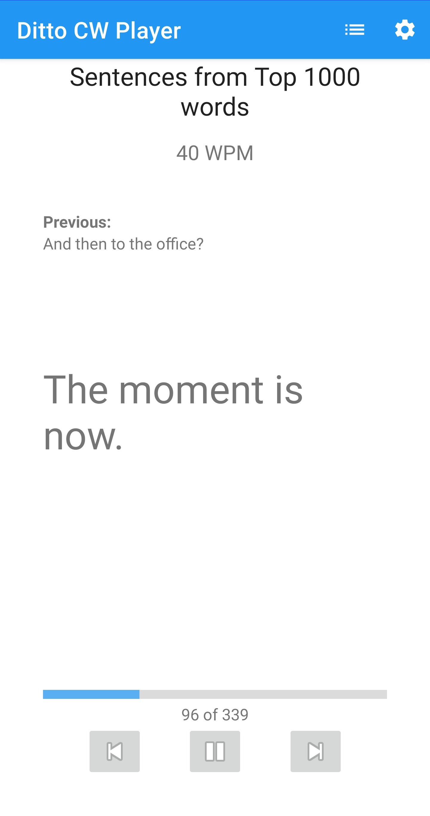 Выберите тренировку и скорость, чтобы учиться. Для каждой строки вы услышите версию Морзе, голосовой текст, а затем снова Морзе.