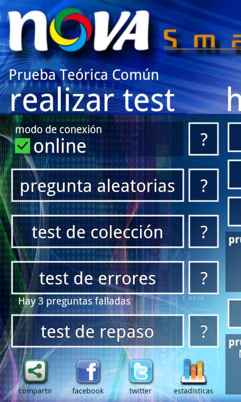 Новая Смартфон имеет то же содержание, как Нова испытания, испытание программы на практике в автошколе и Novatest.es, тест онлайн на практике у себя дома. Они теперь присоединяется к этой приложение, с которым вы можете сделать тест NOVA, где вы находитесь.