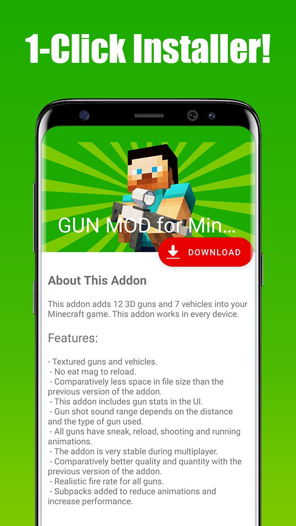 Мод на оружие для Minecraft PE — это приложение, которое позволяет вам загрузить и установить полнофункциональную надстройку для оружия в ваш мир Minecraft всего за 1 нажатие!