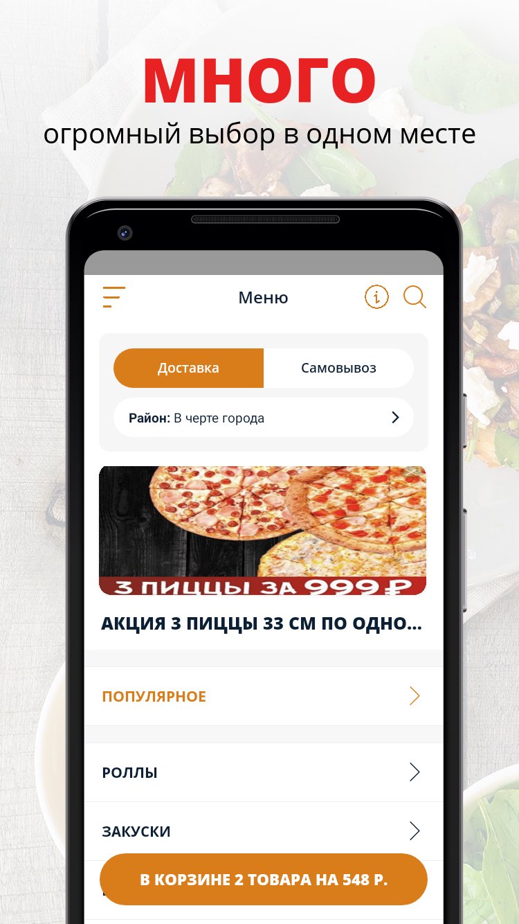 Сделать заказ пиццы еще никогда не было так просто! Скачивайте приложение, выбирайте вкусные блюда из нашего меню и оформляйте заказ на доставку еды!