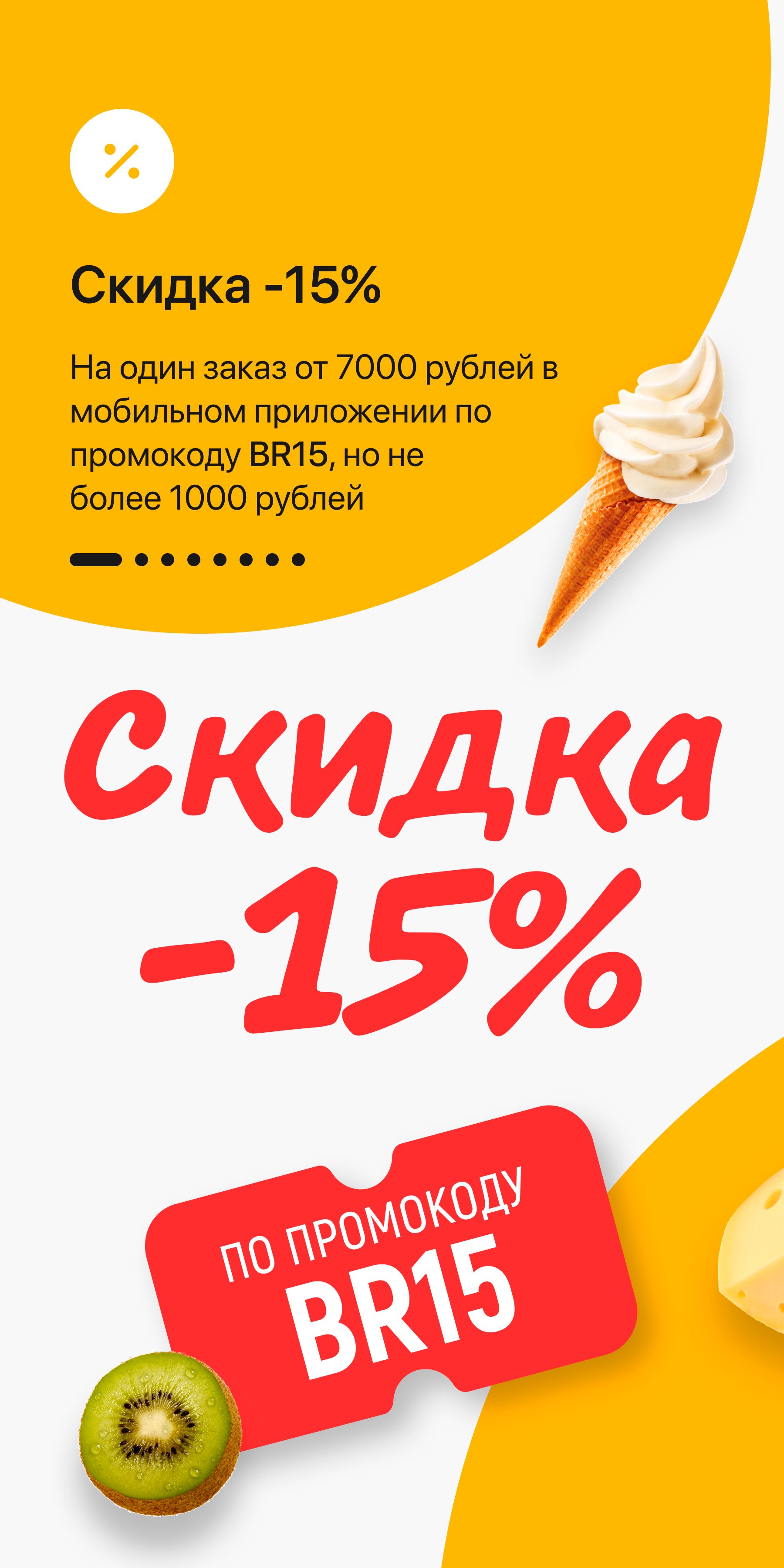 Выбирайте свежие овощи и фрукты, свежее мясо и рыбу, суши и роллы, продукты питания, напитки, готовую еду на завтрак, ужин или обед, хлебобулочные изделия, посуду, домашний текстиль, декор для дома, бытовую химию, электронику, бытовую технику, товары для дачи и отдыха.