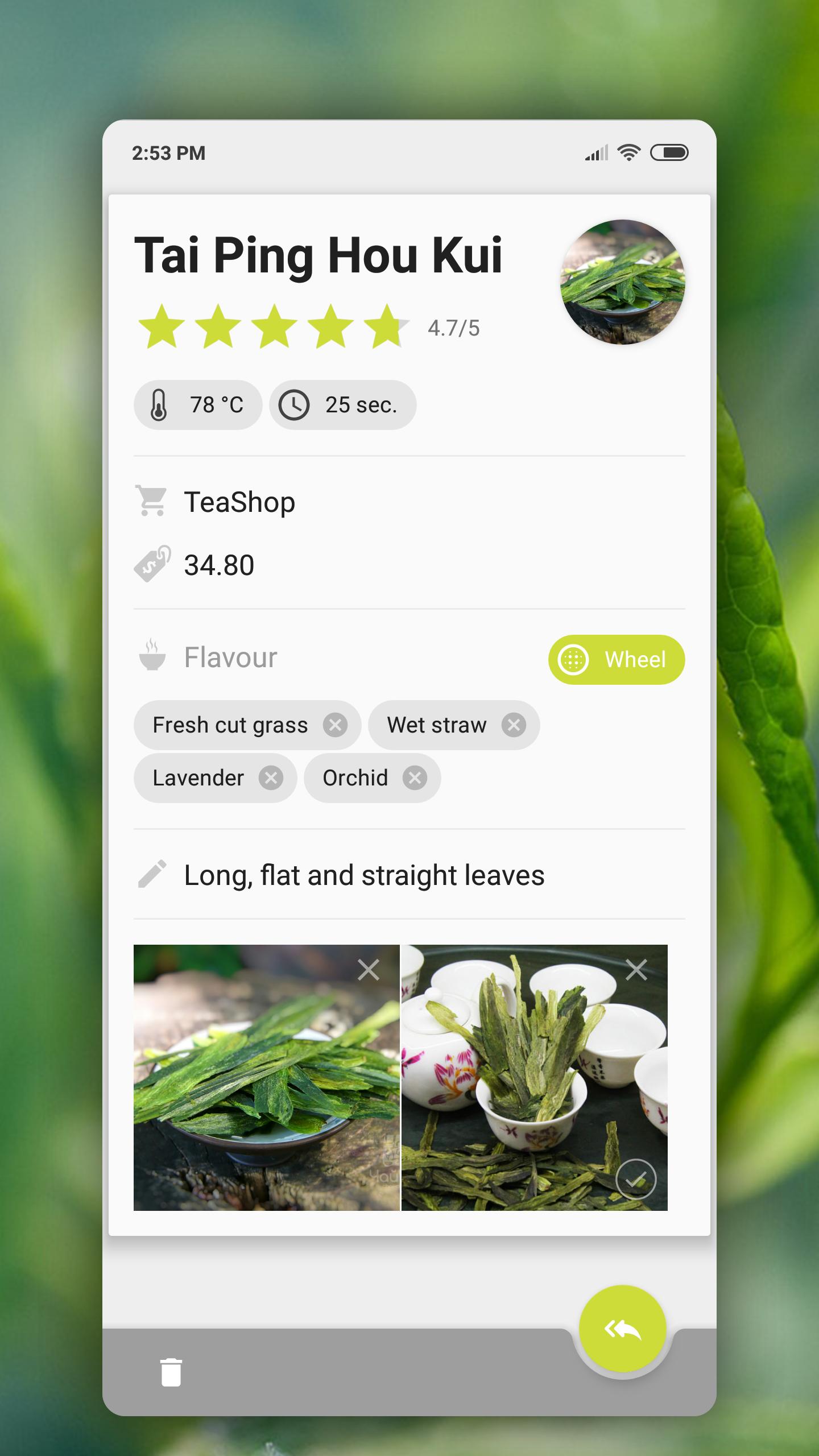 Чайный Дневник - приложение для тех, кто не хочет забывать, какой чай он пил месяц назад. Заводи заметки о каждом чае, отмечай вкусы, прикрепляй фотографии, составь свой рейтинг. Чтобы в следующий раз, когда ты захочешь попить чай, ты точно знал, чего хочешь.