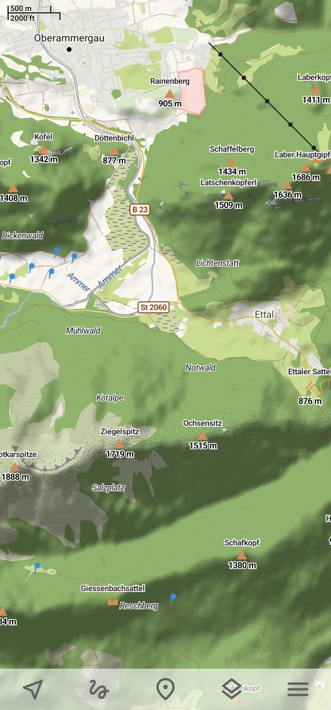 Режим похода акцентирует внимание на тропах и дорожках. Он визуализирует сложность и видимость тропы и отображает пешие маршруты. Также отображаются специальные символы OSMC, которые помогают идентифицировать выбранный маршрут.