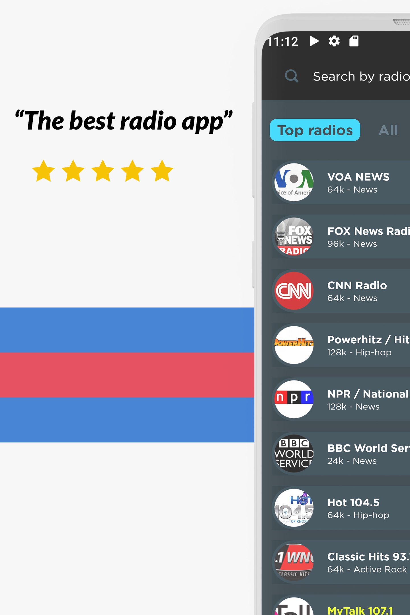 Слушайте все ваши любимые радиостанции, такие как FOX News Talk, VOA Learning English, Bloomberg, New York Hott, 100hitz Top 40 Hitz, 80’s 90’s Music, Jazz24, Chicago Public, USA Dance, BBC World Service, Love Songs 247, Hot Country B104.7, MyTalk 107.1, Rock 92, NewsTalk 99.1 и многие другие! И неважно, в каком городе или стране вы находитесь, вы можете слушать любимую местную радиостанцию из любой точки мира!