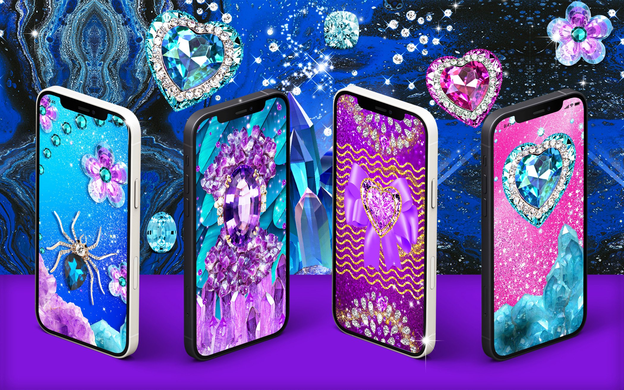 Красивое приложение с кристаллами, бриллиантами, живой анимацией и волшебным прикосновением. Вы найдете множество хрустальных фонов с различными элементами и блестками, красивые сердечки и бриллианты с блестящими элементами, фиолетовые и синие сердечки блестящих цветов.