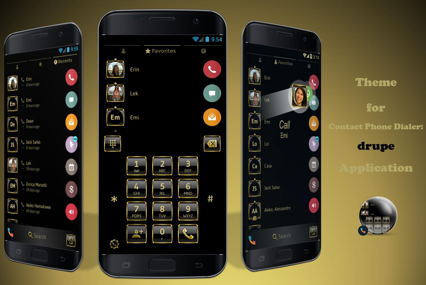 Вы достойны этого, и вы заслуживаете иметь телефон как величественный, как вы! Показать миру, что вы поистине фантастические с этим изысканным черным и Золотая тема. Это тема менеджер телефона номеронабиратель и контактов с черными глянцевые кнопки обрамленная драгоценного металла золота.