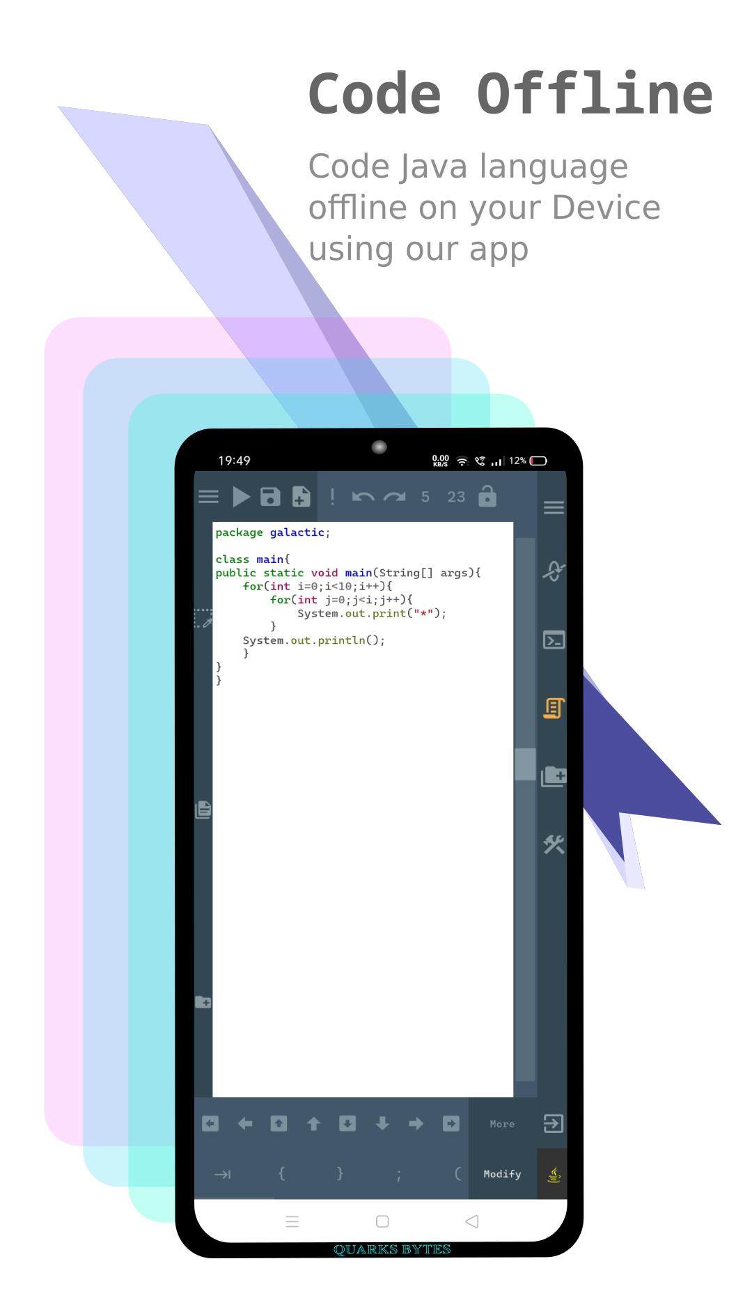 Java/Kotlin Ide, исходящий от разработчика QuarksBytes, в прошлом работал на системе Android.