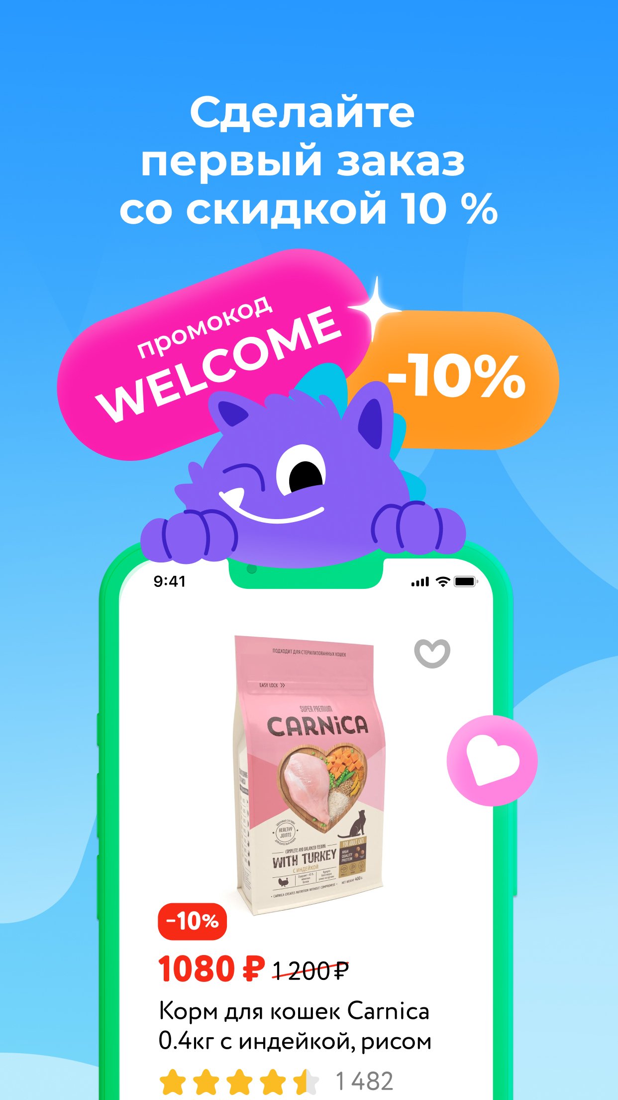 • Копите и тратьте бонусы. Ваша виртуальная бонусная карта — прямо в приложении: используйте её при каждом заказе на зоотовары, получайте бонусы и оплачивайте ими будущие покупки — и даже полную стоимость!