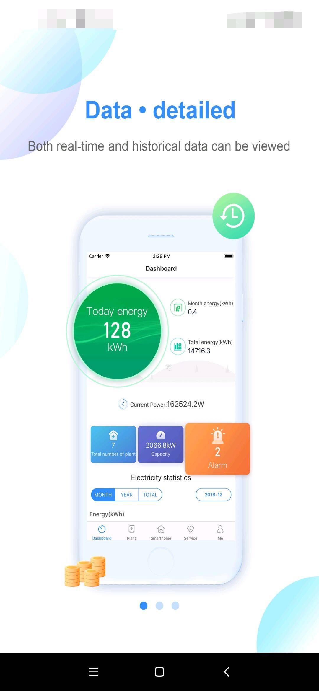 Клиентское программное обеспечение для мониторинга фотоэлектрической станции, новое управление мониторинга, всесторонний анализ данных, вдумчивый интимная обслуживания клиентов. он может собирать завод работает данные из Growatt PV центра обработки данных, таких как энергетический выход, доходов и состояния системы, которые могут быть удаленно и без проводов доступ пользователем.
