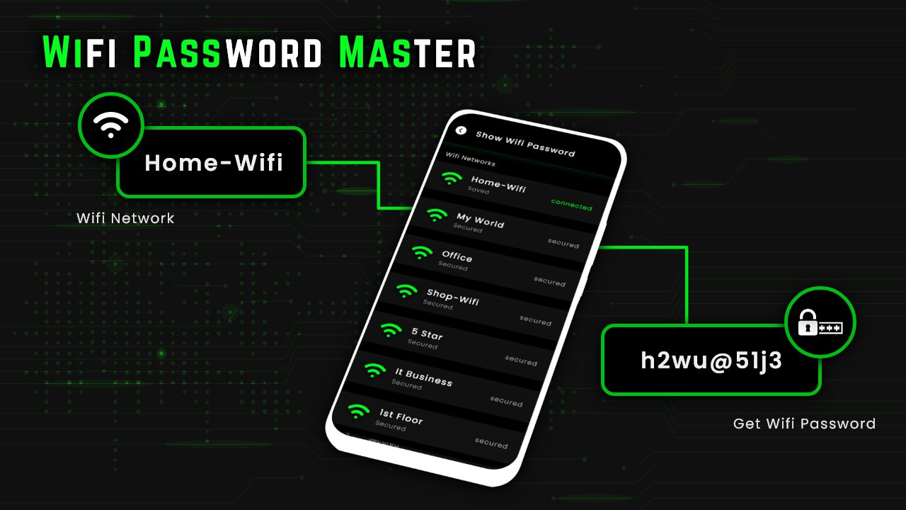 W Генератор паролей Wi-Fi: создавайте надежные пароли для вашего Wi-Fi-маршрутизатора и мобильной точки доступа и сохраняйте/скопируйте для использования в будущем. Все эти сохраненные пароли будут направлены на отображение их главного пароля Wi-Fi. Подключенные устройства: отображение всех устройств, использующих ваш Wi-Fi, с указанием их IP-адреса и Mac-адреса.