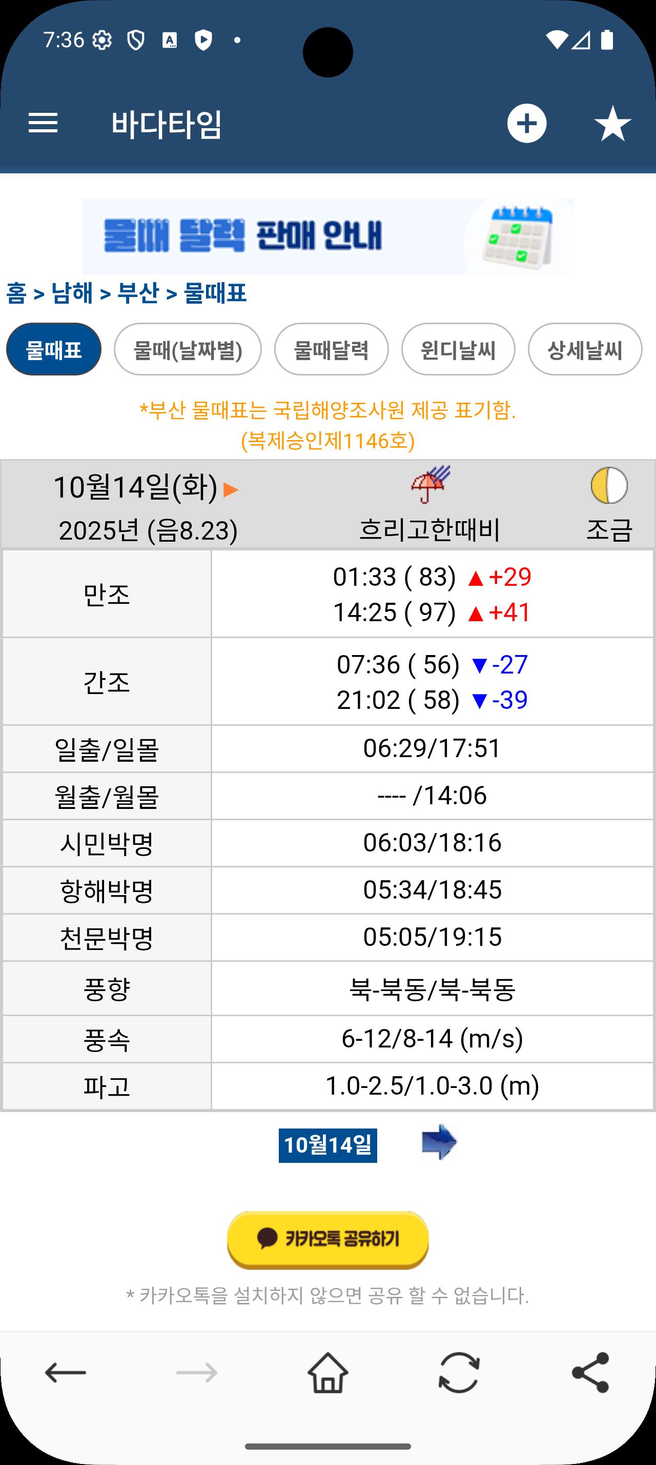 바다타임 (물때표, 조석예보, 바다날씨, 바다수온) на пк