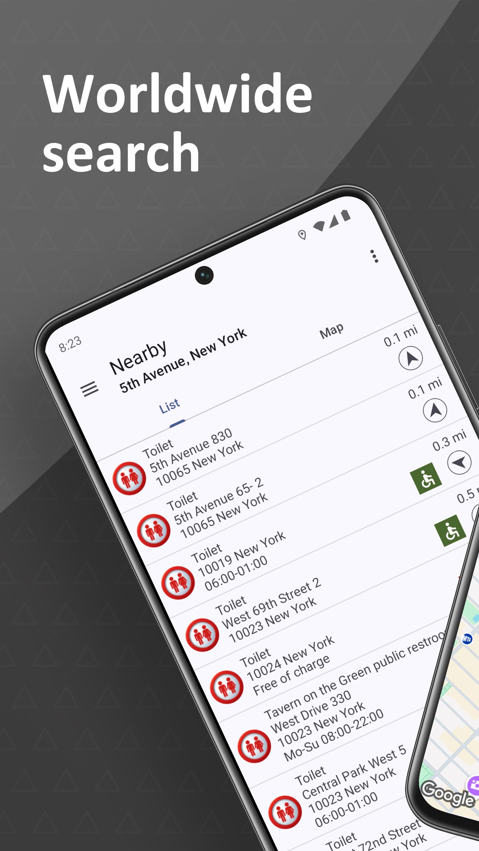 Приложение поддерживает Wear OS! Используйте его на своих умных часах, чтобы найти места рядом с вами. Примечание. Поиск адреса/поиск по карте в настоящее время не поддерживается умными часами.